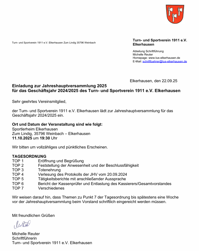 Der Vorstand des TuS Elkerhausen lädt alle interessierten Bürger und Bürgerinnen zu einem Treffen ein.