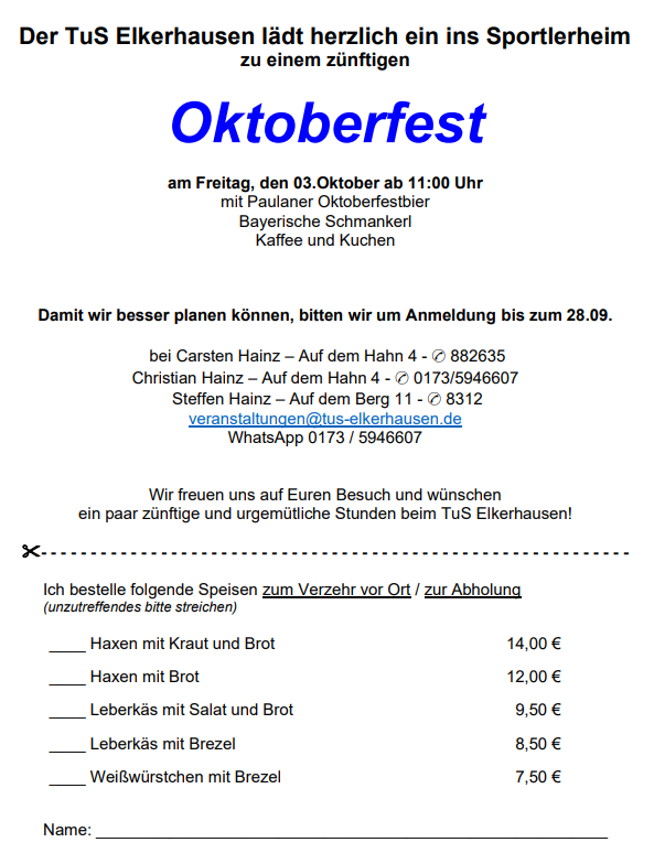 Der Vorstand des TuS Elkerhausen lädt alle interessierten Bürger und Bürgerinnen zu einem Treffen ein.